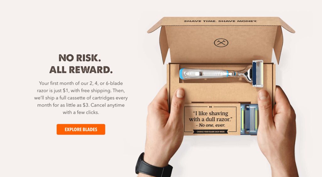Dollar Shave Club’s buttons just beg to be pushed. Their website illustrates how clear calls to action can draw your attention and promote forward movement.